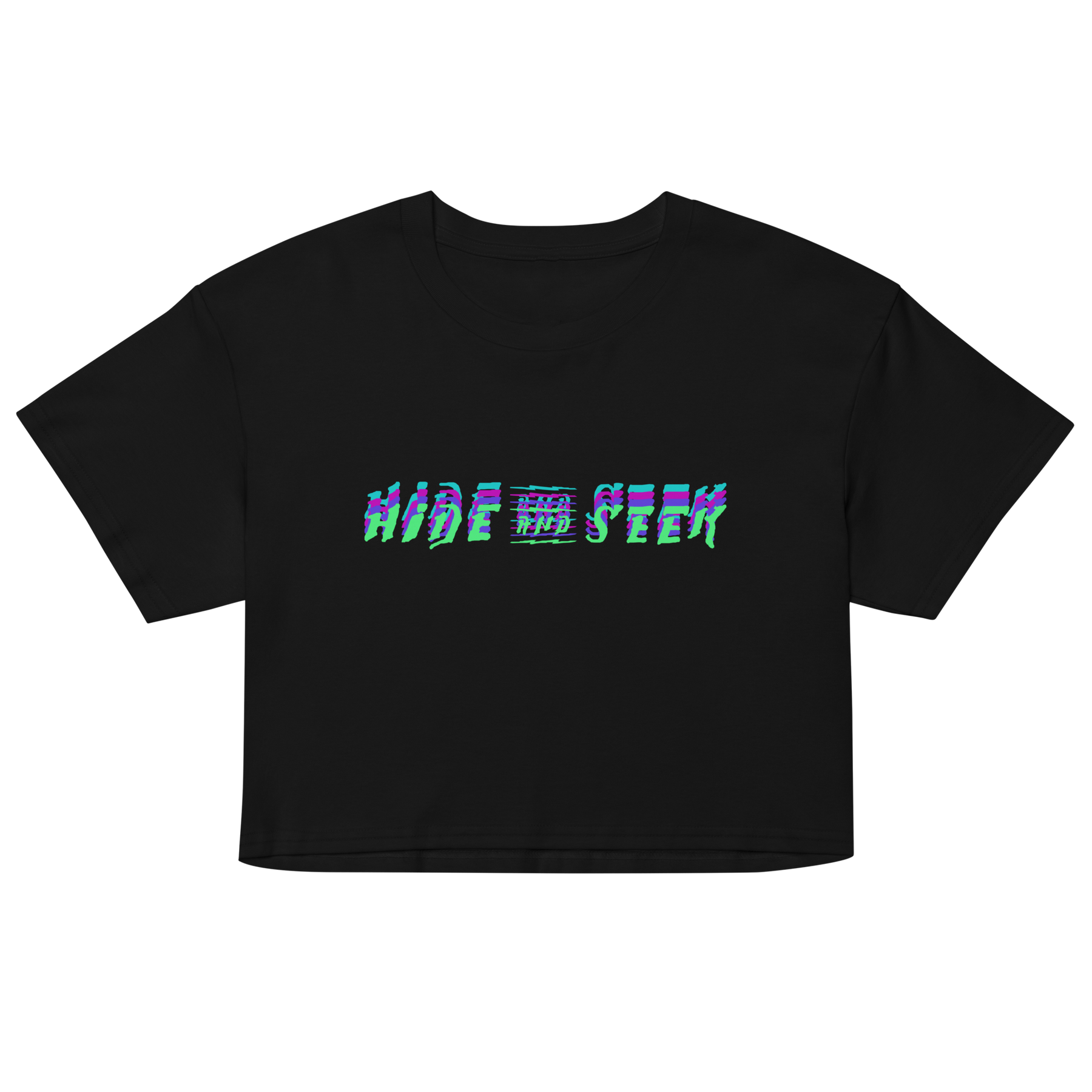 Show your love for mystery with this crop tee featuring a stacked multicolor Hide and Seek logo.